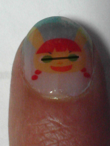 左手の人差し指、キャラはミ○。一応モザイク。